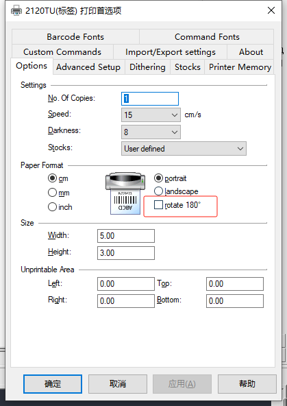 是否打印时遇到出纸方向是反的?如果出现此情况请点击【打印选项】如下图 将 rotate 180° 或中文 旋转 180° 的选项勾选,如果发现打印时是反的且已经被勾选那请把勾选取消掉,确定保存后,重新打开标签打印工具即可!不管界面是否不同或者中文,找到带有 180° 的文字选项就是。有可能在其他选项中找到180°其他选项无需理会不需要更改!!!